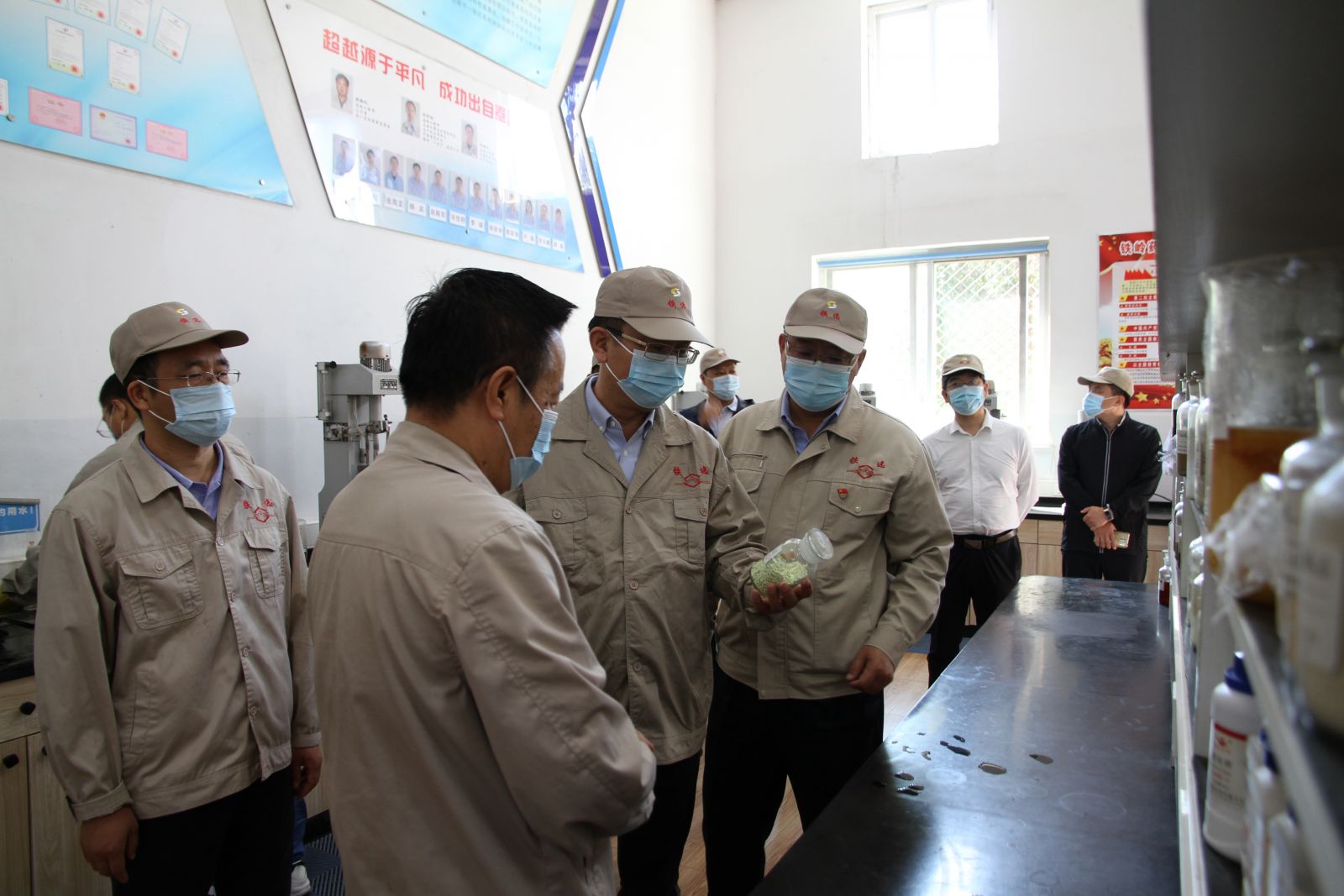 安宜總會計師一行深入鐵嶺藥劑生產(chǎn)車間、研發(fā)中心等地,實地調(diào)研鐵嶺藥劑科技創(chuàng)新工作,了解試驗研究裝備工藝和信息化水平及人才隊伍建設(shè)情況。現(xiàn)場調(diào)研后,召開了座談會。在聽取了中色沈礦總經(jīng)理、黨委副書記左治興關(guān)于中色沈礦1-8月份生產(chǎn)經(jīng)營情況、礦冶工程技術(shù)平臺進展情況、疫情防控、降本增效、安全環(huán)保、黨建等各項重點工作的匯報后,安宜總會計師指出,一是要不忘初心打造礦冶工程技術(shù)平臺,注重文化融合;二是要抓好常態(tài)化疫情防控和復(fù)工復(fù)產(chǎn)工作,沖刺四季度,努力實現(xiàn)全年目標;三是要按照“過緊日子”要求,降低成本,提質(zhì)增效;四是要防范重大風險,做好法律訴訟案件;五是要抓好安全生產(chǎn),守住底線。
