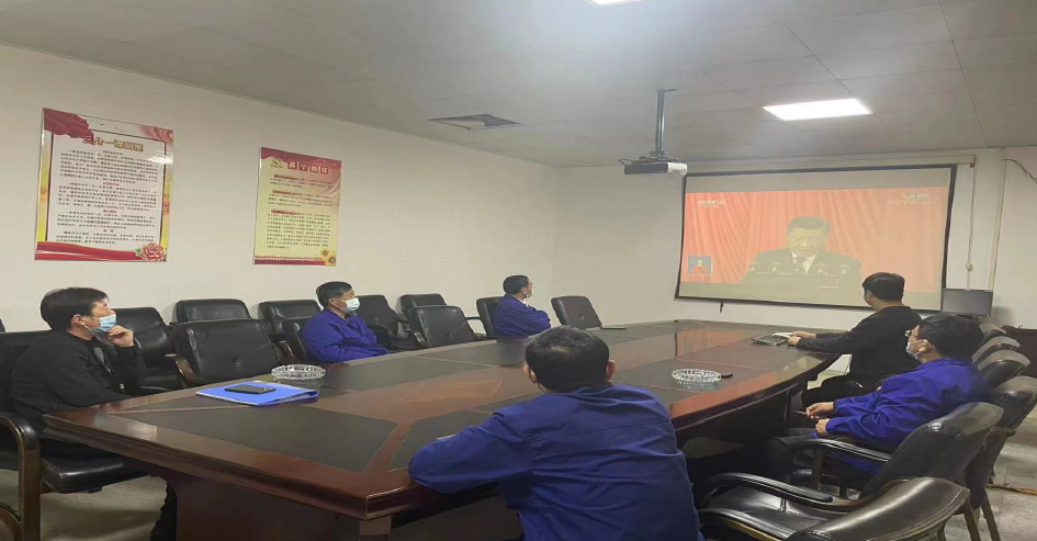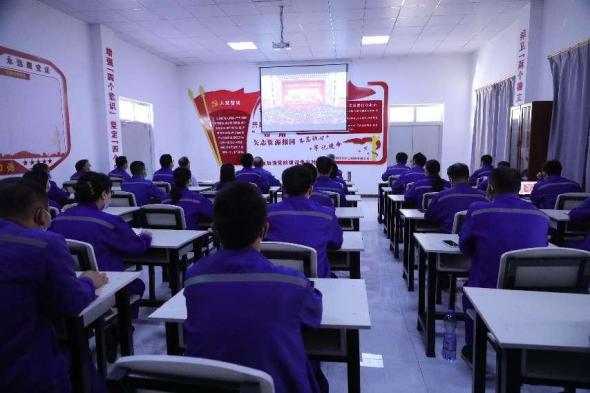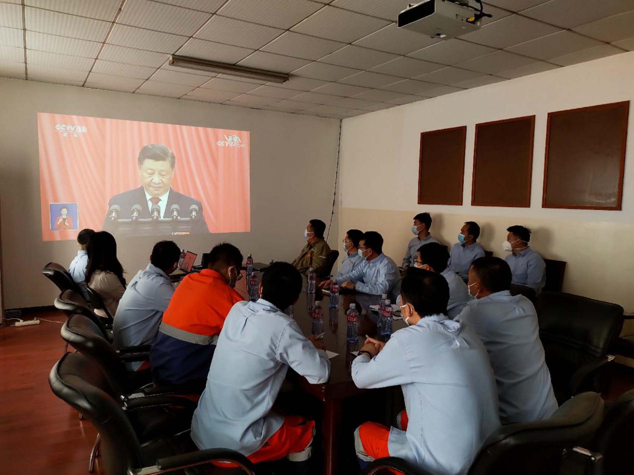 ![]() 中色鑫誠巴依姆項目部收看現場 |
